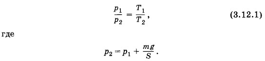 Глава 3. Температура. Газовые законы Примеры решения задач на темы: Температура. Газовые законыЗадачи на применение газовых законов очень разнообразны. Для их решения нельзя указать какой-либо один определенный прием. Полезными могут оказаться следующие советы. 1. Если согласно условию задачи один из трех параметров (р, V или Т) постоянный, то при Т = const надо применять закон Бойля—Мариотта (3.5.2), при р = const — закон Гей-Люссака (3.7.7), а при V = const — закон Шарля (3.10.2) или (3.10.3). 2. Если изменяются все три параметра, то следует воспользоваться уравнением состояния в форме (3.9.9) или (3.9.5). Уравнение состояния (3.9.9) применяется в тех случаях, когда известна масса газа и часть макроскопических параметров в определенном состоянии газа и надо найти неизвестные величины. 3. Для определения давления смеси газов, не вступающих в химические реакции, используют закон Дальтона (3.8.2). 4. Во многих задачах требуется построение графиков, изображающих разного рода процессы. Для этого нужно знать зависимость параметров друг от друга, которая в общем случае дается уравнением состояния, а в частных — газовыми законами. 5. При решении большинства задач надо четко представлять себе, каково начальное состояние системы и какой процесс переводит его в конечное состояние. Задача 1Как измерить медицинским термометром температуру тела человека, если температура окружающего воздуха +42 °С? Решение. Можно предварительно охладить термометр в холодильнике. Если холодильника нет, то нужно подержать термометр 5—8 мин под мышкой, извлечь его и сразу же стряхнуть. Термометр покажет температуру тела, так как ртуть в термометре сожмется при контакте с телом до объема, соответствующего температуре тела. Задача 2Газ в цилиндрическом сосуде разделен на две равные части подвижным поршнем, имеющим массу т и площадь сечения S. При горизонтальном положении цилиндра давление газа в каждой половине сосуда равно р. Определите давление газа над поршнем при вертикальном положении цилиндра. Температуру газа считать постоянной. Решение. При горизонтальном положении цилиндра объем каждой его части обозначим через V (эти объемы равны). При вертикальном положении цилиндра объем верхней части станет равным V + ΔV, а нижней V - ΔV. Давление в нижней части цилиндра станет равным