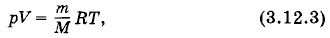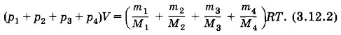 где m = m1 + m2 + m3 + m4 — масса воздуха с объемом V, а М — искомая эффективная молярная масса. Согласно закону Дальтона p = p1 + p2 + p3 + p4. Сравнивая уравнения состояния (3.12.2) и (3.12.3), получим
