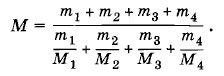 Здесь M1, M2, M3 и M4 — молярные массы соответственно азота, кислорода, аргона и углекислого газа. Складывая правые и левые части этих уравнений, получим