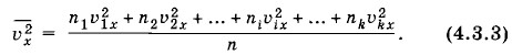 Среднее значение квадрата скоростиНас будет интересовать средний квадрат проекции скорости. Он находится так же, как квадрат модуля скорости (см. выражение (4.1.2)):