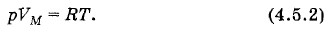 Формула (4.5.1) устанавливает связь макроскопических параметров — давления р и объема VM — со средней кинетической энергией поступательного движения молекул. Вместе с тем полученное опытным путем уравнение состояния идеального газа для 1 моль имеет вид