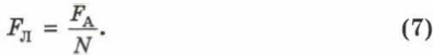 Подставим теперь это выражение для силы тока в формулу (2) для силы Ампера. Мы получим FА = NBqυ. (6) Учтём теперь, что сила Ампера действует на все N свободных зарядов в проводнике, а сила Лоренца — только на один заряд. Следовательно,