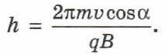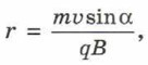 где m — масса частицы, q — её заряд. Подсказка. В выражение для силы Лоренца в данном случае в качестве скорости входит υ⊥, а центростремительное ускорение выражается формулой