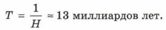 Что же означает этот стоящий в знаменателе огромный промежуток времени? Чтобы ответить на этот вопрос, запишем закон Хаббла в виде r = υT, где