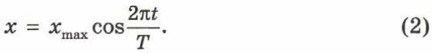 Подсказка. Воспользуйтесь тем, что период функции cosax равен Формулу, выражающую зависимость смещения х от времени t для тела, совершающего гармонические колебания, называют уравнением гармонических колебаний. Обычно уравнение гармонических колебаний записывают в виде x = xmax cosωt. (3) Величину ω называют циклической частотой.