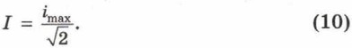 Заметим теперь, что для постоянного тока мощность тока выражается формулой Р = I2R. (9) Сравнивая формулы (8) и (9), мы видим, что за время, в течение которого происходит достаточно много колебаний силы тока, в резисторе выделяется одинаковое количество теплоты в случае переменного и постоянного тока, если сила постоянного тока I удовлетворяет соотношению