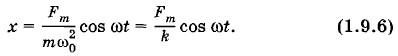 По фазе с колебаниями силы совпадают теперь не колебания координаты, а колебания ускорения. Колебания координаты происходят в противофазе с колебаниями внешней силы. Амплитуда координаты равна: