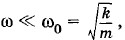 Движение тела, подчиняющееся этому уравнению, достаточно сложно, особенно вначале, когда оно не является гармоническим. Мы рассмотрим лишь три предельных случая. Первый случай: Второй случай: ω >> ω0; выполняется противоположное условие. И наконец, самый важный случай: * Необходимо сделать одно уточнение. При наличии сил сопротивления собственная частота ωc свободных колебаний не равна Вынужденные колебания малой частотыЕсли ω << ω0, то из трех членов левой части уравнения (1.9.5) самым большим будет последний член Отсюда