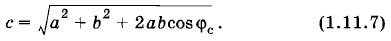 осуществляется так. Строят векторы φc = φ02- φ01, (1.11.5) представляет собой сдвиг фаз между этими колебаниями. Так как частоты складываемых колебаний равны, то угол φc между векторами Проекция суммарного вектора x = х1 + х2 = c cos (ωt + φ0). (1.11.6) Оно происходит с той же частотой ю, что и колебания х1 и х2. Модуль с вектора