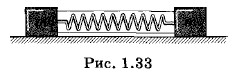 Глава 1. Механические колебания Упражнение 1 на тему: Механические колебания1. Период колебаний материальной точки 2,4 с, амплитуда 5 см, начальная фаза равна нулю. Каковы смещение, скорость и ускорение колеблющейся точки через 0,4 с после начала колебаний? Колебания происходят по закону косинуса. 2. Маятник, сделанный из ферромагнитного материала, колеблется над полюсом электромагнита. Как изменится частота его собственных колебаний, если через катушку электромагнита пропустить постоянный ток? 3. При температуре t1 = 20 °С период колебаний маятника Т1 = 2 с. Во сколько раз изменится период колебаний, если температура возрастет до t2 = 30 °С? Температурный коэффициент линейного расширения материала маятника α = 1,85 • 10-5 К-1. 4. Чему равен период колебаний математического маятника, находящегося в вагоне, движущемся горизонтально с ускорением 5. Оцределите период колебаний маятника в лифте, движущемся вертикально с ускорением а) вверх; б) вниз. 6. Шарик массой m, подвешенный на длинной нити, совершает колебания. Как изменится частота колебаний, если шарику сообщить положительный заряд q и поместить его в однородное электрическое поле с напряженностью 7. Как изменится период вертикальных колебаний груза, висящего на двух одинаковых пружинах, если последовательное соединение пружин заменить параллельным? 8. На горизонтальной поверхности лежат два бруска, массы которых равны соответственно m1 и m2. Бруски связаны пружиной жесткостью k. Пружина сжата при помощи двух нитей, как показано на рисунке 1.33. Нити пережигают. Определите период Т колебаний данной системы. Трение отсутствует.