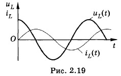 В момент, когда напряжение на катушке достигает максимума, сила тока равна нулю (рис. 2.19). В момент, когда напряжение становится равным нулю, сила тока максимальна по модулю.