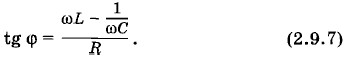 Мгновенное значение силы тока меняется со временем гармонически: i = Im sin (ωt + φc), (2.9.6) где φc — разность фаз между силой тока и напряжением в сети. Она зависит от частоты со и параметров цепи R, L, С. Сдвиг фаз между током и напряжениемСдвиг фаз φс между колебаниями силы тока и напряжения равен по модулю углу φ между векторами