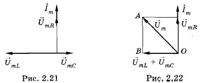 Чему равна амплитуда силы тока в такой цепи (колебательном контуре), если на ее концах поддерживается напряжение u(t) = Um sin ωt? Мы видели, что при включении по отдельности в цепь проводника с активным сопротивлением R, конденсатора емкостью С или катушки с индуктивностью L амплитуда силы тока определяется соответственно формулами (2.6.2), (2.7.3) и (2.8.4). Амплитуды же напряжений на резисторе, катушке индуктивности и конденсаторе связаны с амплитудой силы тока так: