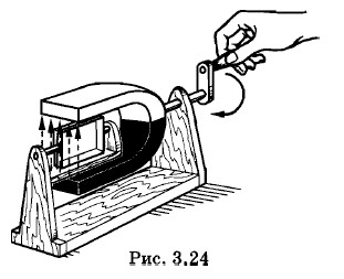 Чтобы понять основную идею конструкции и действия этих двигателей, обратимся к опыту (рис. 3.24). Если дугообразный магнит привести во вращение, то помещенный в это поле замкнутый проволочный виток тоже придет во вращение в ту же сторону, в какую вращается магнит. Объяснить опыт можно следующим образом. Так как магнит вращается, то создаваемое им магнитное поле тоже приходит во вращение. При вращении поля изменяется магнитный поток через виток, поэтому в витке индуцируется ток. Взаимодействие индукционного тока с магнитным полем вращающегося магнита вызывает вращение витка.