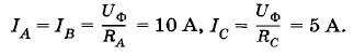Если выпрямитель работает без нагрузки, то конденсатор должен рассчитываться на пробивное напряжение, не меньшее 180 В, а диод — на напряжение, не меньшее 360 В. Задача 3Фазное напряжение генератора трехфазного тока Uф = 125 В. Потребитель энергии включен звездой. Все его фазы обладают активными сопротивлениями: RA = RB = 12,5 Ом, RC = 25 Ом. Определите силу тока в нейтральном проводе. Решение. Согласно закону Ома