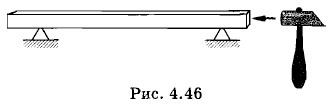 Решение. Для того чтобы возбудить в стержне продольную волну, надо произвести удар по его торцу (рис. 4.46). В результате стержень деформируется на величину Δl = и Δt, где u — скорость, приобретенная частицами стержня при ударе, Δt — время удара (время действия силы ).