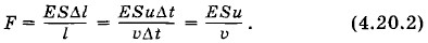 За время Δt фронт возбужденной при деформации стержня продольной волны переместится на расстояние l = υΔt, где υ — скорость распространения продольных волн. Следовательно, за время Δt в колебательное движение приходит часть стержня массой Δm = ρV = ρSl = ρSυΔt, где S — площадь поперечного сечения стержня.