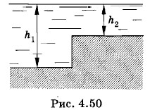 10. На рисунке 4.50 изображено поперечное сечение большого сосуда с жидкостью. Слева из среды с глубиной h1 под углом к границе раздела глубин движется плоская волна, длина которой λ >> h1 Под φ1 каким углом к границе раздела глубин будет распространяться эта волна в среде, где глубина жидкости h2? Считать скорость волн равной 11. Звуковые волны частотой ν имеют в первой среде длину λ1 а во второй среде λ2. Как изменится скорость распространения этих волн при переходе из первой среды во вторую, если λ1 = 2λ2? 12. Во сколько раз изменится длина звуковой волны при переходе звука из воздуха в воду? Скорость звука в воде υ1 = 1480 м/с, в воздухе υ2 = 340 м/с. 13. При каком расстоянии между источниками (см. рис. 4.37) ни в одной точке не будет полного гашения волн? 14. Один из двух неподвижных кораблей излучает в воду ультразвуковой сигнал, который принимается в воде приемником второго корабля дважды: через время t1 и t2 (t2 > t1) от момента излучения сигнала первым кораблем. Считая дно горизонтальным и скорость звука в воде равной υ, определите глубину моря Н. 15. Скорость звука в стержне из дюралюминия υ = 5,1 • 103 м/с. Плотность дюралюминия ρ = 2,7 • 103 кг/м3. Определите модуль Юнга.