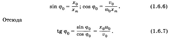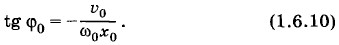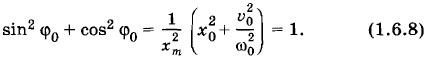 Это выражение определяет начальную фазу φ0. В частном случае, если x0 = 0, то tg φ0 = 0 и φ0 = 0. Если же υ0 = 0, то tg φ0 = ∞ и Возведя в квадрат оба уравнения (1.6.6) и сложив их левые и правые части, получим: