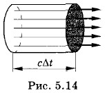 Плотность потока излучения простым образом связана с плотностью энергии электромагнитной волны. Выберем поверхность площадью S, перпендикулярную лучам, и построим на ней как на основании цилиндр с образующей с Δt (рис. 5.14). Объем цилиндра ΔV = ScΔt. Энергия электромагнитного поля внутри цилиндра равна произведению плотности энергии на объем: