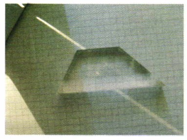2. Положите на бумагу плоскопараллельную пластинку так, чтобы луч света входил в неё через одну из двух параллельных граней и выходил через другую, как показано на фотографии.