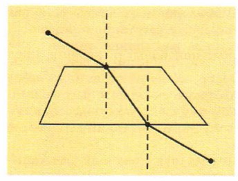 4. Выключите лампочку и сделайте построение хода луча при прохождении его сквозь плоскопараллельную пластинку, как показано на рисунке.