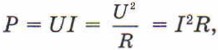 Мощность тока на участке цепи где U — напряжение на концах участка, I — сила тока в цепи, R — сопротивление участка цепи.